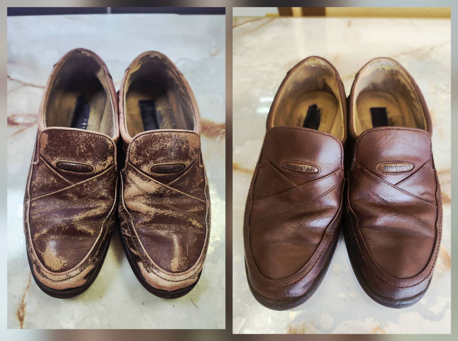 80代の義父の靴のビフォーアフターです。 長年履き慣れた、愛着のある一足。 「お父さん、だいぶくたびれてきたから新しい靴買ったら?」と、義母が何度となく伝えても、義父は断固としてこの靴を履き続けていました。 理由はシンプル。 歩きやすいから。自分の足に馴染んでいるから。疲れないから。安心するから。 なるほど…歩きたいと思う健康な心は、愛着のあるこの靴があるからなんだ。この靴なら大丈夫。って思える安心があるからなんだ。 弊社スタッフが、義父の日常にすぐに必要だからと、時間をかけずに染色が出来るコースを作ってくれました。 70歳以上のお客様へ、新サービスのお知らせです。 愛着のある一足をこの先も長く安心して履いて下さい! ☘️シニア割☘️ お預かりからお返しまで最短5日❣️ ①クリーニングのみ 通常価格3,630円(税込)が1,815円! ②クリーニングをして、写真のように色を回復させるコース 通常価格5,500円(税込)が2,750円! おじいちゃん、おばあちゃんの お手伝い、ぜひ私達にもさせて下さい✨